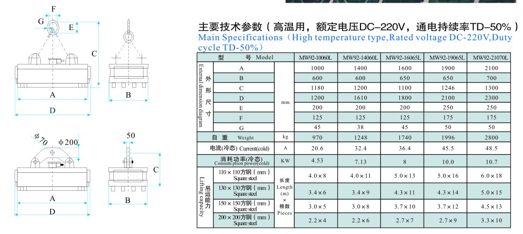 MW92系列调运钢锭用起重电磁铁